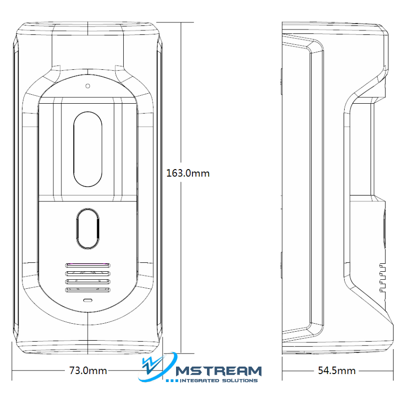 Корпус панелі компактний — 163 × 73 × 55 мм, що дозволяє встановлювати її надзвичайно легко на поверхню стіни або будь-яку вертикальну площину. При цьому домофон Dahua VTO2101E-P-S2 витримує широкий діапазон температур — від –40 °C до +60 °C, що робить її придатною для монтажу як всередині приміщень, так і на вулиці, незалежно від кліматичних умов.